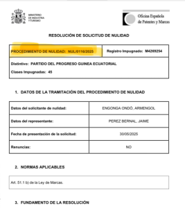 La reciente resolución de la Oficina Española de Patentes y Marcas sobre la nulidad del registro del nombre y el escudo del PPGE por parte de Severo Moto no es un simple trámite administrativo. Es una reafirmación rotunda de la verdad frente a años de maniobras, confusión interesada y tentativas de apropiación indebida que han intentado desfigurar la esencia del Partido del Progreso de Guinea Ecuatorial (PPGE). La ley ha hablado con claridad: en política no todo vale, y actuar de mala fe tiene consecuencias.
